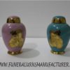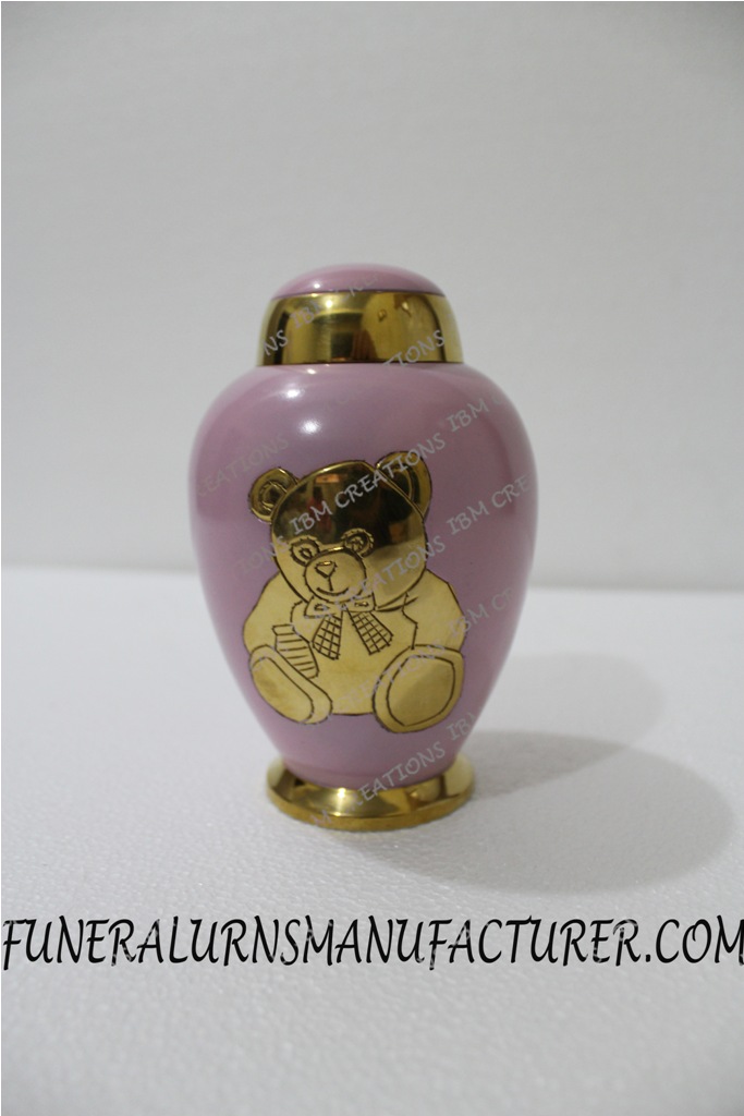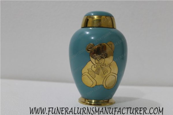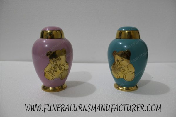 DETAILS : Child urn, painted in blue & pink color in memory of a girl or a boy, engraved a teddy & polished on outer surface