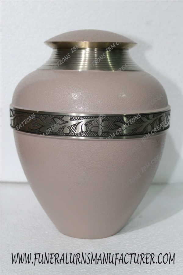 This Urn is crafted with love & emotion by our highly experienced artisian team, we offer the finest quality of Brass Cremation Urns, it is Fully embossed textured in pink color with pewter on neck of the urn whereas, inside is colored with black paint. Our urns are crafted by our creative artisans utilizing the finest quality of brass & alloy and high-end carving tools. This urn is available with a “screw-on” top lid and felt on bottom and is used for decorating the interior of houses, offices and other places to keep our loved ones close to our hearts.