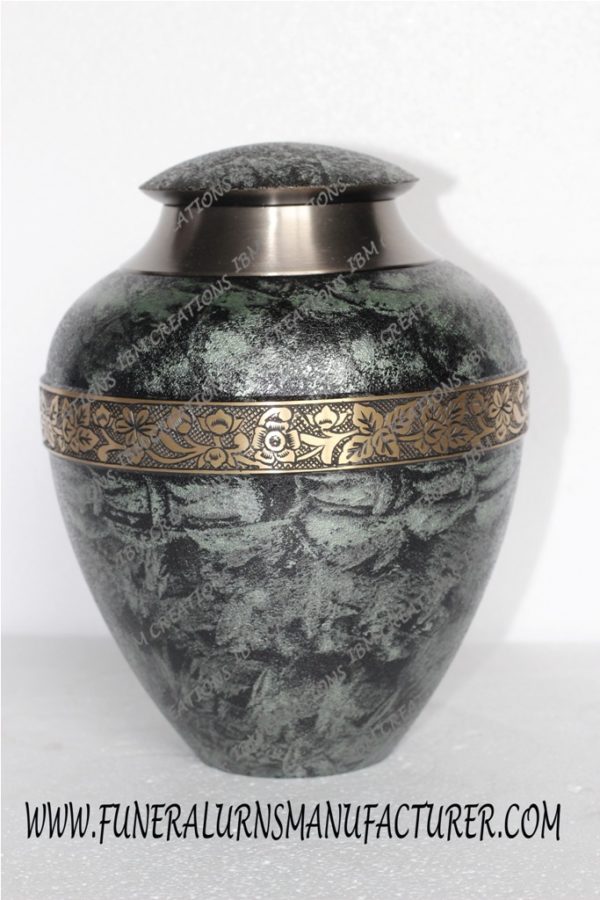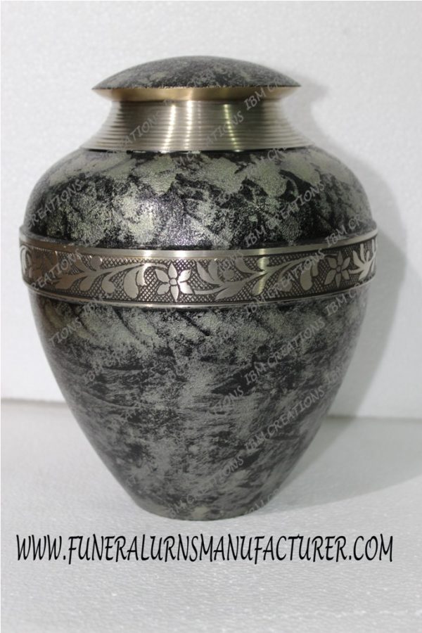 EBONY ELITE BRASS CREMATION URN – EMBOSSED TEXTURE & PEWTER (FUM/HB/1064)