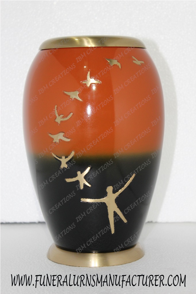 This Urn is crafted with love & emotion by our highly experienced artisan team, we offer the finest quality of Brass Cremation Urns, it is painted in two tone color with Human departing engraved on the urn whereas, inside is colored with black paint. Our urns are crafted by our creative artisans utilizing the finest quality of brass & alloy and high-end carving tools. This urn is available with a “screw-on” top lid and felt on bottom and is used for decorating the interior of houses, offices and other places to keep our loved ones close to our hearts.
