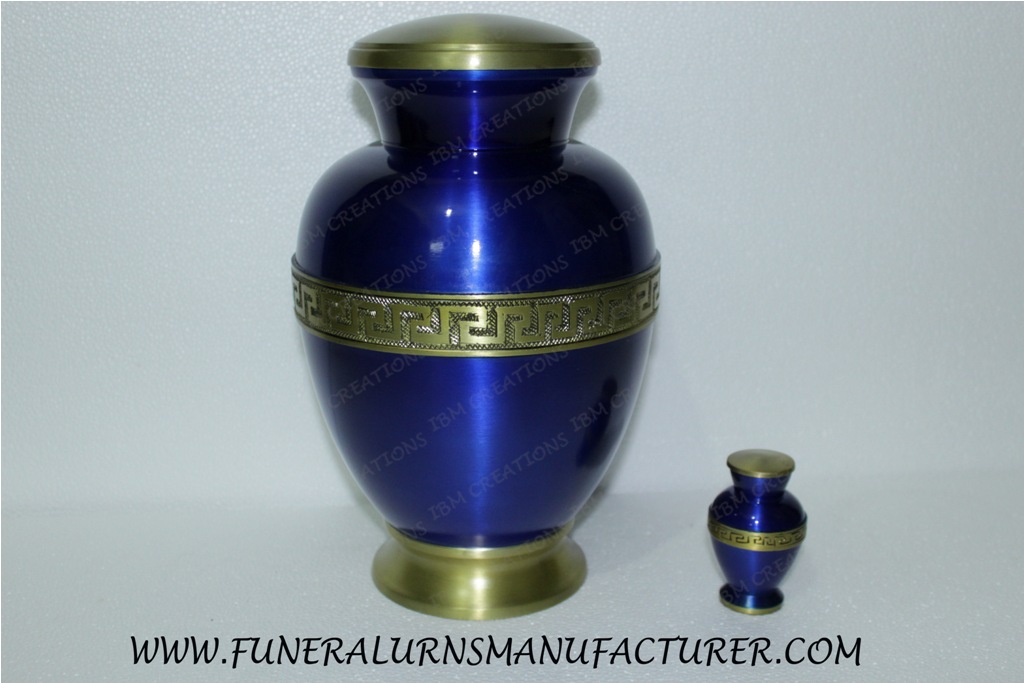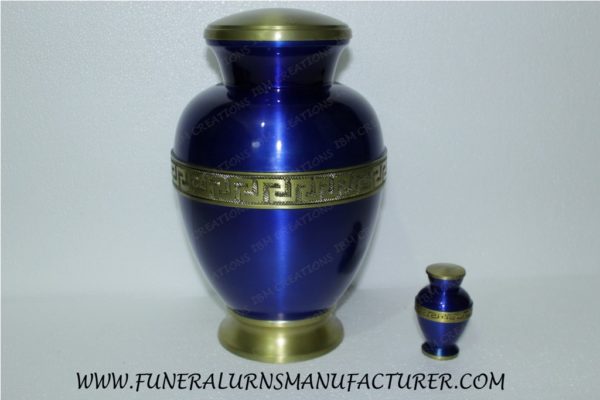 NEW ARCADIA BRASS CREMATION URN – BLUE COLORED & MATT (FUM/HB/1072)