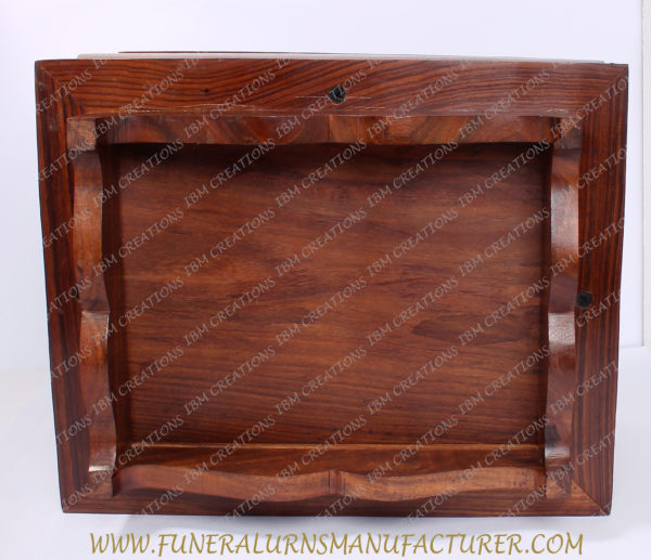 This Urn is crafted with love & emotion by our highly experienced artisian team, we offer the finest quality of wooden Cremation Urns, this urn is made up of 100% rose wood with punched in liner of brass on top of the box with natural wooden texture finish whereas, inside of the box is sand papered & natural finish. The unmatched quality and unsurpassed look has attracted various national as well as international clients to place repeated orders Our urns are crafted by our creative artisans utilizing the finest quality of Rose Wood and high-end carving tools. This urn is available with a “Slider” cover on the bottom of the box and is used for decorating the interior of houses, offices and other places to keep our loved ones close to our hearts.